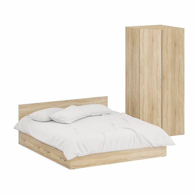 Двуспальная кровать с ящиками 1800 с угловым шкафом Стандарт цвет дуб сонома